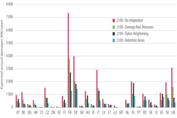 France and the UK account for half of the annual economic losses from coastal flooding; the total loss averages EUR 1.4 billion per year.